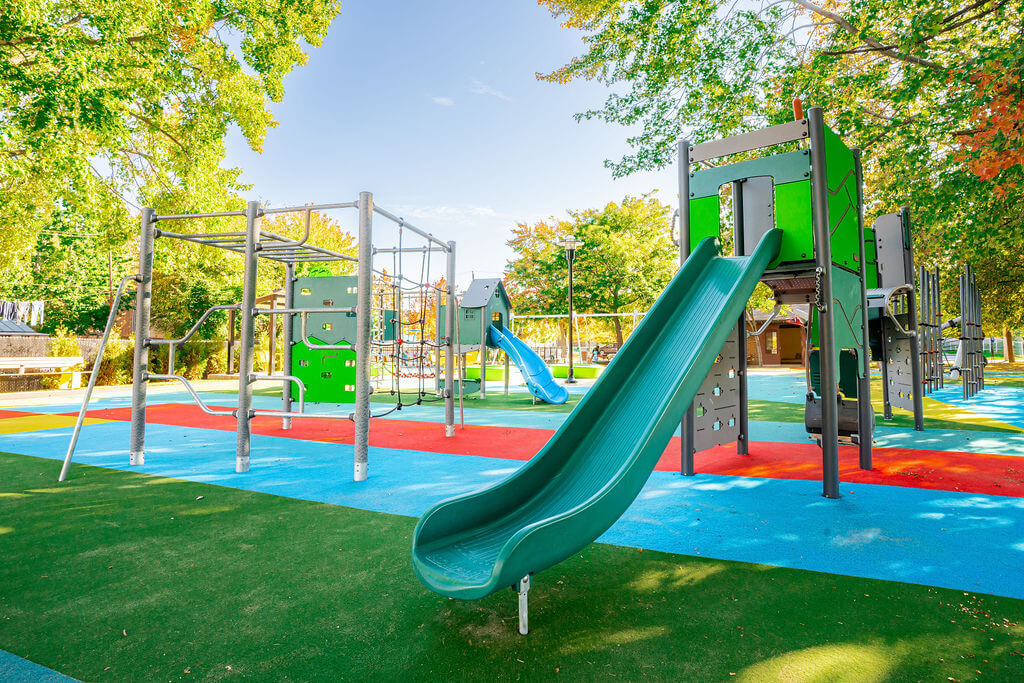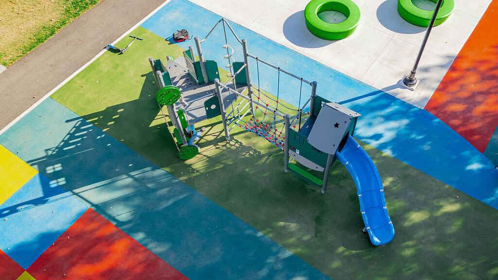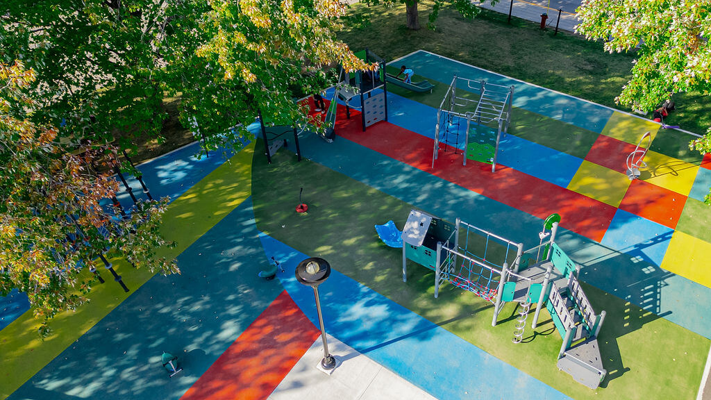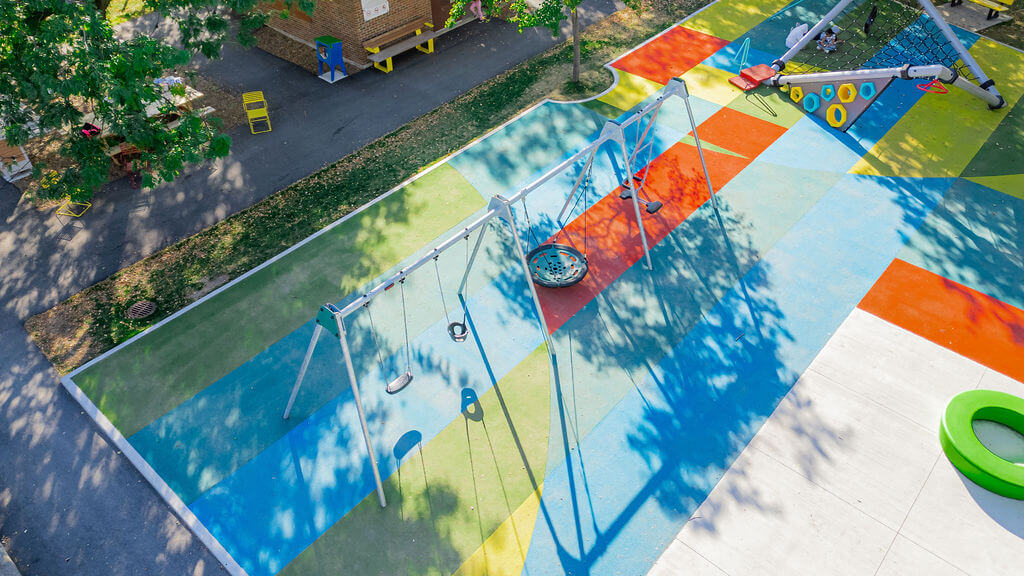 The KAP team imagined a modern, colorful playground, while Atmosphäre gave shape to this vision with equipment that is sustainable, inclusive and full of personality.