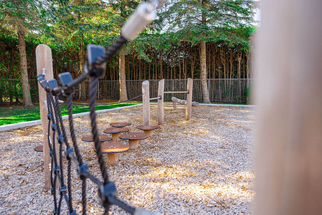Dès leur arrivée, les jeunes aventuriers se laissent tenter par le parcours avec poutre d’équilibre, parfait pour tester leur coordination tout en s’amusant entre amis.